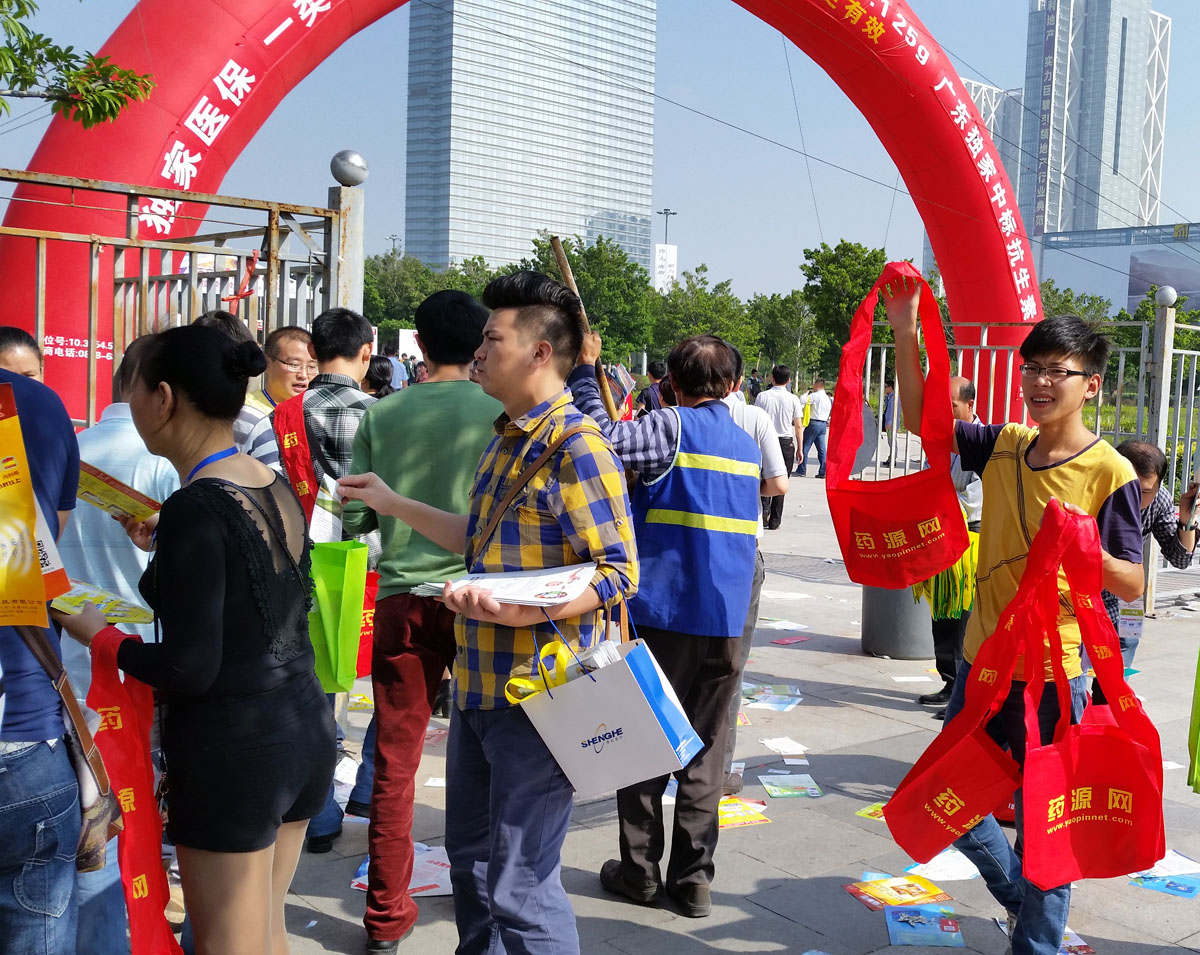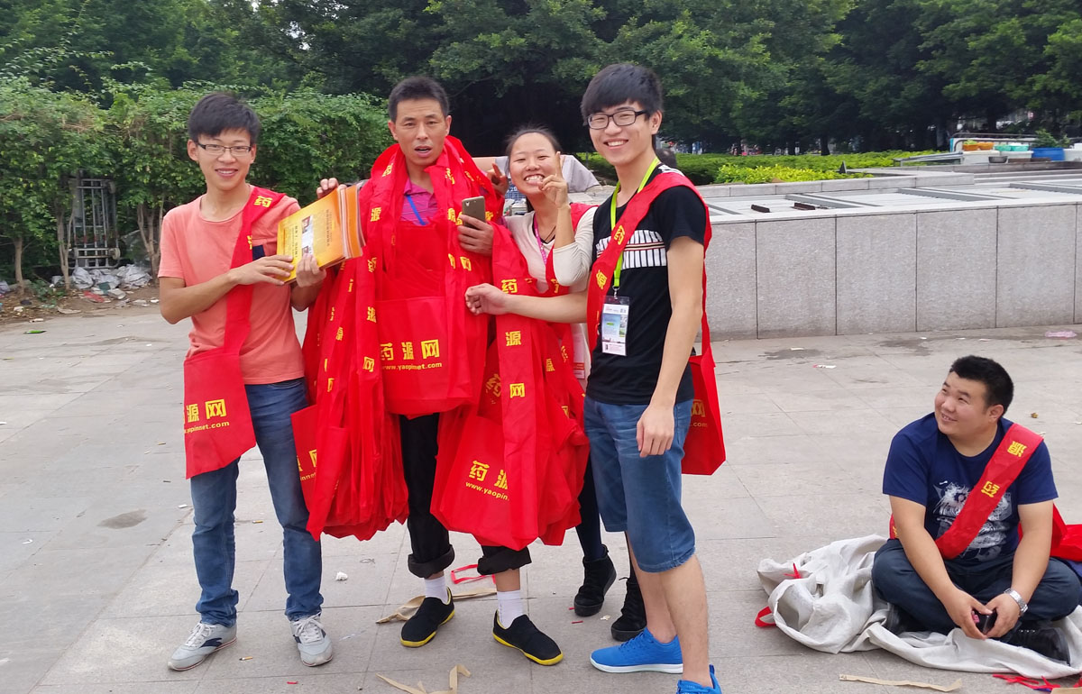 藥源網(wǎng)派發(fā)雜志、水杯、資料袋等