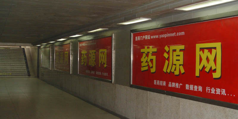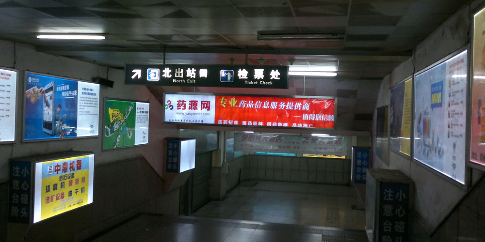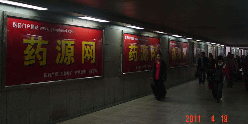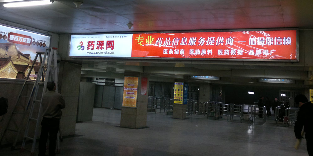 成都火車站出口通道藥源網(wǎng)燈箱廣告