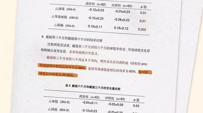 3~6個(gè)月的臨床數(shù)據(jù)顯示,輕松控Pro延緩眼軸增長(zhǎng)的效果為56%,延緩近視加深達(dá)68%。