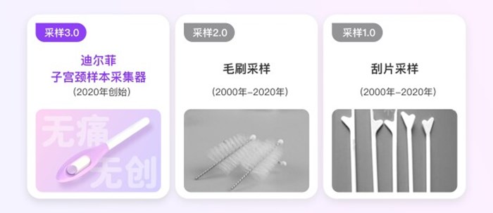 而且,迪爾菲兩檢服務(wù)包提供的子宮頸樣本采集器為灌洗式采集器,此種采集器通過沖洗宮頸獲取宮頸脫落細(xì)胞,不會如毛刷采集器一般觸碰到宮頸表層,因而不會對宮頸造成損傷,采集過程更為安全、舒適。