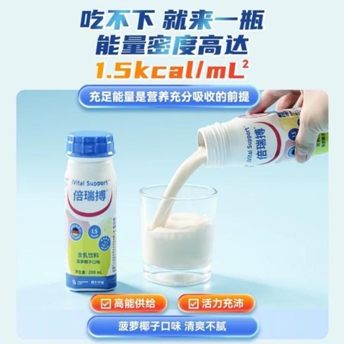 倍瑞搏口服營(yíng)養(yǎng)補(bǔ)充劑具備低碳水、高脂肪、高蛋白以及高能量這樣“三高一低”的特點(diǎn),同時(shí)倍瑞搏可助力營(yíng)養(yǎng)元素的充分吸收[5]。此外,倍瑞搏口服營(yíng)養(yǎng)補(bǔ)充劑還含有魚油助力免疫,鋅和維生素C等營(yíng)養(yǎng)素助力術(shù)后恢復(fù)[5],是個(gè)不可多得的營(yíng)養(yǎng)補(bǔ)充佳品。如果平時(shí)有血糖問題的話,也可以選擇倍瑞家族中的倍瑞蘋口服營(yíng)養(yǎng)補(bǔ)充劑,低糖低GI,同樣能為身體更好地補(bǔ)充營(yíng)養(yǎng)。