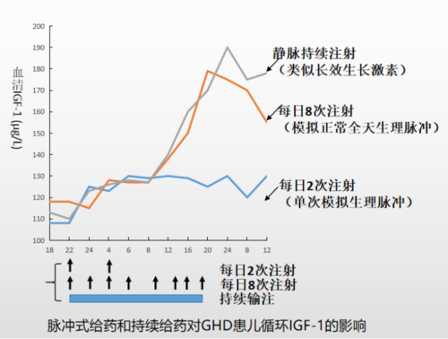 雖然注射頻率降低了,但長效水劑的療效卻一點(diǎn)沒打折,反而更優(yōu)秀了。因?yàn)槿梭w自身生長激素的分泌并不是一成不變的直線,而是一條高低起伏的曲線,就像是一座座小山峰。即便短效生長激素每日都給藥一次,但也只能模擬數(shù)個(gè)小山峰中的一個(gè),卻不能維持體內(nèi)生長激素的曲線分泌。而穿上外套的長效生長激素通過排除速度的減慢完美地解決了這個(gè)問題,讓藥品更持久平穩(wěn)地發(fā)揮作用,從而更貼近體內(nèi)天然生長激素分泌產(chǎn)生的生物學(xué)效應(yīng),療效自然有保障。