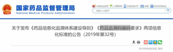 來源:藥監(jiān)局 更新時(shí)間:2019/4/29近日,國家藥監(jiān)局發(fā)布公告,發(fā)布了《藥品信息化追溯體系建設(shè)導(dǎo)則》《藥品追溯碼編碼要求》兩項(xiàng)信息化標(biāo)準(zhǔn)。對(duì)于藥品信息化追溯體系參與構(gòu)成及基本要求等提出了具體規(guī)范和標(biāo)準(zhǔn)。