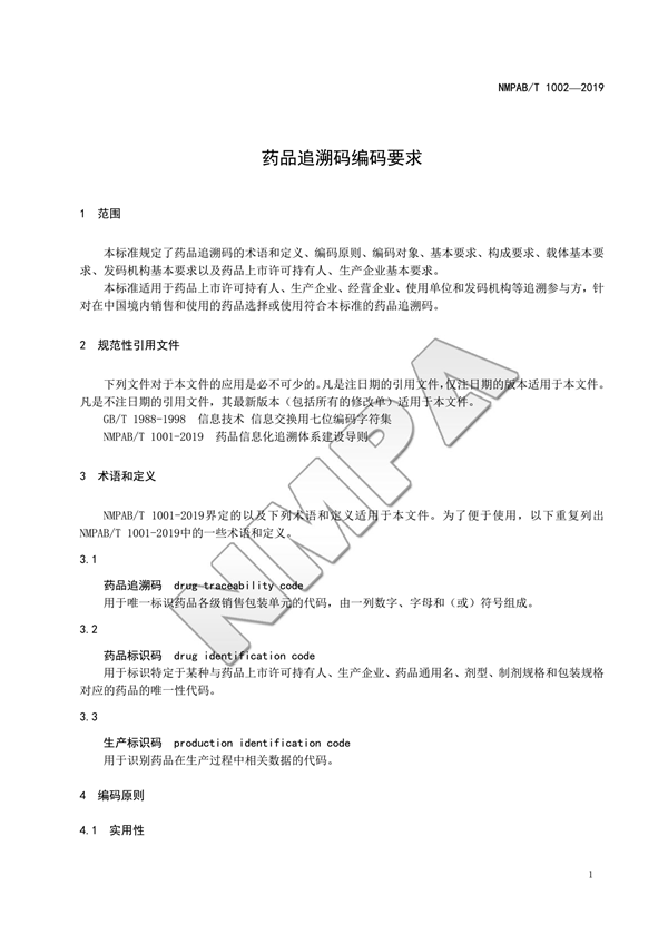 為貫徹落實(shí)《國務(wù)院辦公廳關(guān)于加快推進(jìn)重要產(chǎn)品追溯體系建設(shè)的意見》(國辦發(fā)〔2015〕95號(hào))和《國家藥監(jiān)局關(guān)于藥品信息化追溯體系建設(shè)的指導(dǎo)意見》(國藥監(jiān)藥管〔2018〕35號(hào))等文件要求,推動(dòng)藥品信息化追溯體系建設(shè),國家藥監(jiān)局組織編制了《藥品信息化追溯體系建設(shè)導(dǎo)則》和《藥品追溯碼編碼要求》兩項(xiàng)信息化標(biāo)準(zhǔn)(見附件)?,F(xiàn)予發(fā)布,自發(fā)布之日起實(shí)施。