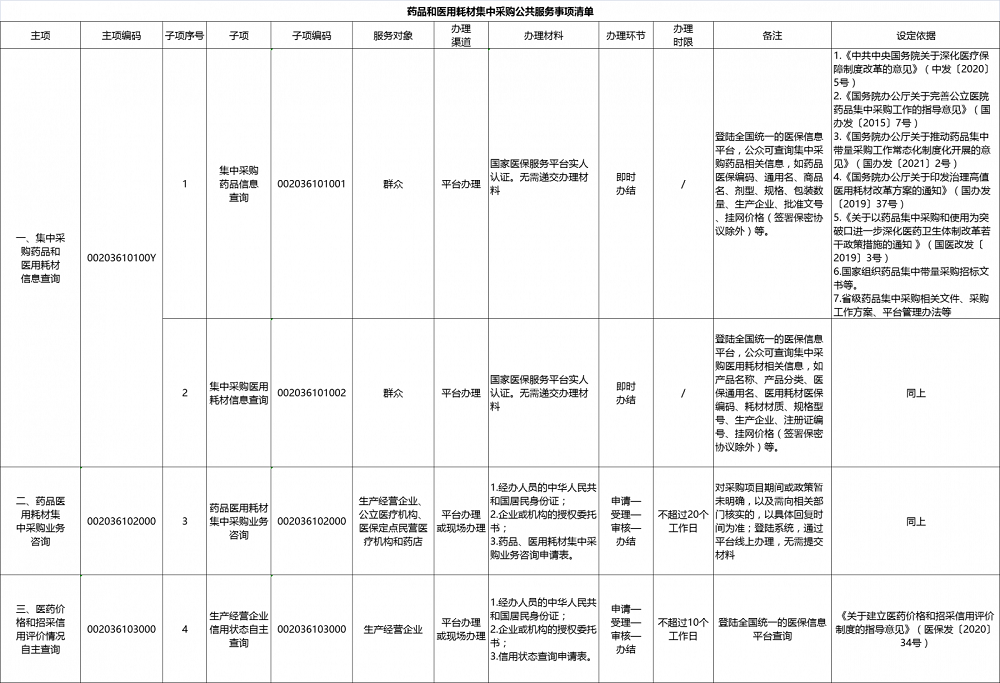 附件:藥品和醫(yī)用耗材集中采購公共服務事項清單