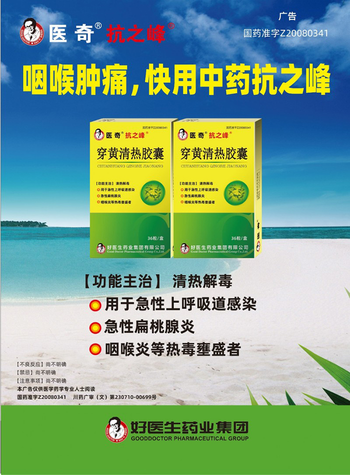 醫(yī)奇?抗之峰?穿黃清熱膠囊作為品牌旗下產(chǎn)品代表,也是好醫(yī)生集團(tuán)代表性子品牌之一,其作為咽喉腫痛推薦產(chǎn)品,憑借其獨(dú)特的配方和顯著的效果,以傳統(tǒng)中藥一枝黃花作為藥品原料,以中藥材源頭質(zhì)量為第一車間,堅(jiān)守“中醫(yī)藥決定質(zhì)量的核心在土里”的理念,用優(yōu)質(zhì)的產(chǎn)品關(guān)愛大眾健康,深受廣大患者的認(rèn)可與信賴。該產(chǎn)品選用道地藥材,采用現(xiàn)代科技提取工藝,充分發(fā)揮藥材的藥效,具有清熱解毒、抗病毒、抗炎等作用,對(duì)于感冒、流感等癥狀有顯著療效。