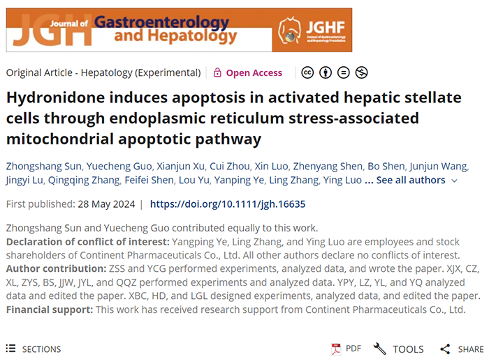 近日,治療肝纖維化的新藥研發(fā)再獲新進(jìn)展,相關(guān)研究論文《羥尼酮F351通過內(nèi)質(zhì)網(wǎng)應(yīng)激相關(guān)線粒體凋亡途徑誘導(dǎo)活化的肝星狀細(xì)胞凋亡》正式發(fā)表在美國《Clinical Gastroenterology And Hepatology》(CGH)學(xué)術(shù)期刊上。