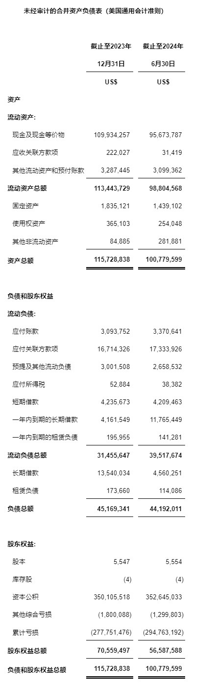 現金和現金等價物2023年12月31日約1.10億美元,2024年6月30日約0.96億美元。截至2024年6月30日,公司從中國境內各商業(yè)銀行獲得的人民幣貸款由2023年12月31日的2,190萬美元減少至2024年6月30日的2,050萬美元。從貸款中所獲得資金主要用來支付公司在中國境內產生的研發(fā)費用。