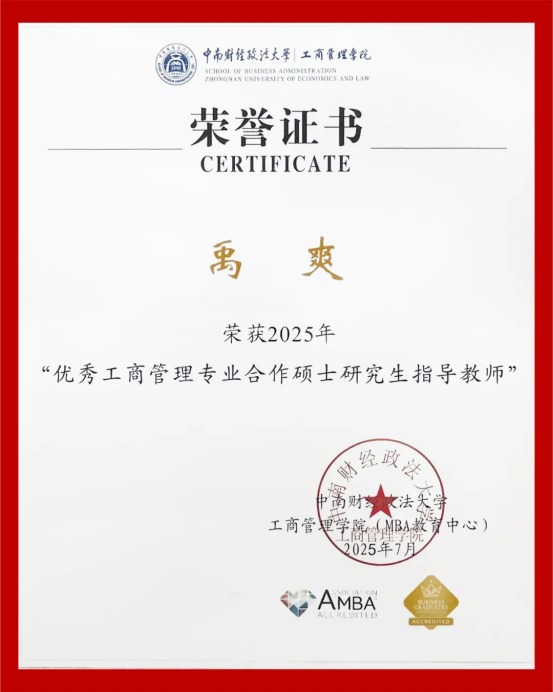 此次“優(yōu)秀工商管理專業(yè)合作碩士研究生指導教師”榮譽的獲得,不僅是高校對禹爽院長個人育人實踐的認可,也彰顯了集團在醫(yī)教融合、人才共育上的堅定投入與階段成果。