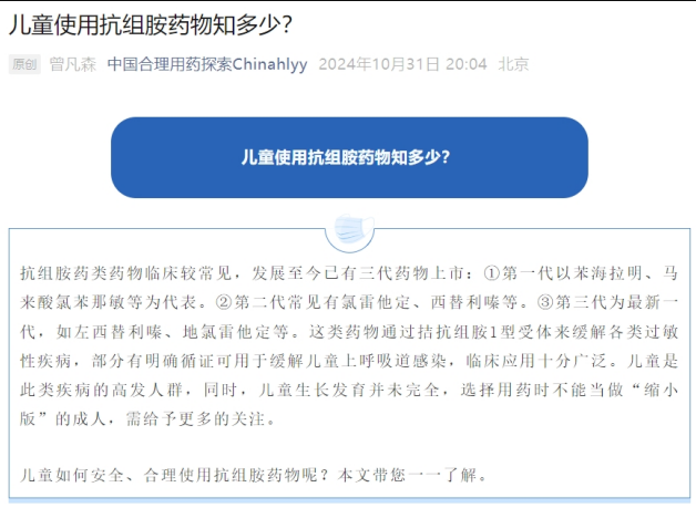 針對兒童如何安全、合理使用抗組胺藥物,國家藥品監(jiān)督管理局主管的核心期刊《中國合理用藥探索》官方微信公眾號曾發(fā)布《兒童使用抗組胺藥物知多少?》一文給予了指導(dǎo)建議。其中第三代抗組胺藥物代表藥物——鹽酸左西替利嗪顆粒憑借安全性、有效性、劑型適宜、臨床使用經(jīng)驗豐富等優(yōu)勢,被推薦為緩解兒童各類過敏性疾病和上呼吸道感染卡他癥狀的建議優(yōu)選藥物。