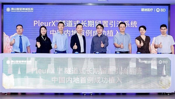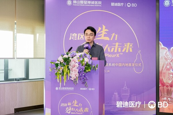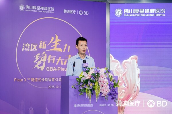 2025年10月14日,碧迪醫(yī)療、佛山復(fù)星禪誠(chéng)醫(yī)院(以下簡(jiǎn)稱佛山禪醫(yī))聯(lián)合舉辦了"灣區(qū)新生力,碧有大未來(lái)"GBA-PleurX首發(fā)儀式,正式宣告PleurX隧道式長(zhǎng)期留置引流(IPC)系統(tǒng)通過(guò)"港澳藥械通"政策首次落地中國(guó)內(nèi)地臨床應(yīng)用。該系統(tǒng)是一項(xiàng)專門針對(duì)復(fù)發(fā)性、惡性胸腔積液進(jìn)行長(zhǎng)期引流的創(chuàng)新方案,也是碧迪醫(yī)療首款通過(guò)港澳藥械通政策在內(nèi)地實(shí)現(xiàn)臨床應(yīng)用的創(chuàng)新產(chǎn)品,為深受復(fù)發(fā)性、惡性胸腔積液困擾的患者帶來(lái)了更安全的治療手段。在本次首發(fā)儀式上,佛山禪醫(yī)院長(zhǎng)趙曉東、佛山禪醫(yī)副院長(zhǎng)梁舒鎮(zhèn)、碧迪醫(yī)療中國(guó)區(qū)腫瘤診斷事業(yè)部副總裁姚家偉、華潤(rùn)佛山醫(yī)藥總經(jīng)理蒲力,受邀出席,并發(fā)表致辭。