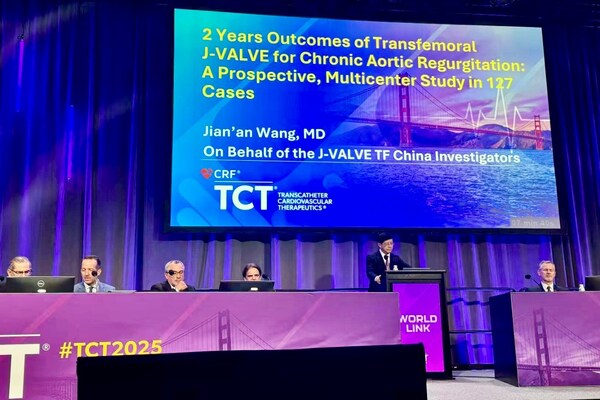 當?shù)貢r間10月25日,2025年美國經(jīng)導管心血管治療學術(shù)會議(TCT)在舊金山召開。中國科學院院士、浙江大學醫(yī)學院附屬第二醫(yī)院王建安教授代表中國研究團隊,首次向全球公布了"J-VALVE TF經(jīng)導管主動脈瓣膜系統(tǒng)(簡稱J-VALVE TF瓣膜)"治療主動脈瓣反流的2年臨床隨訪數(shù)據(jù)。結(jié)果顯示,患者術(shù)后心源性死亡率、三度房室傳導阻滯發(fā)生率等核心指標分別為3.9%和5.5%,持續(xù)優(yōu)于國際同類產(chǎn)品,且瓣膜血流動力學穩(wěn)定,患者心功能及生活質(zhì)量獲得長期顯著改善。