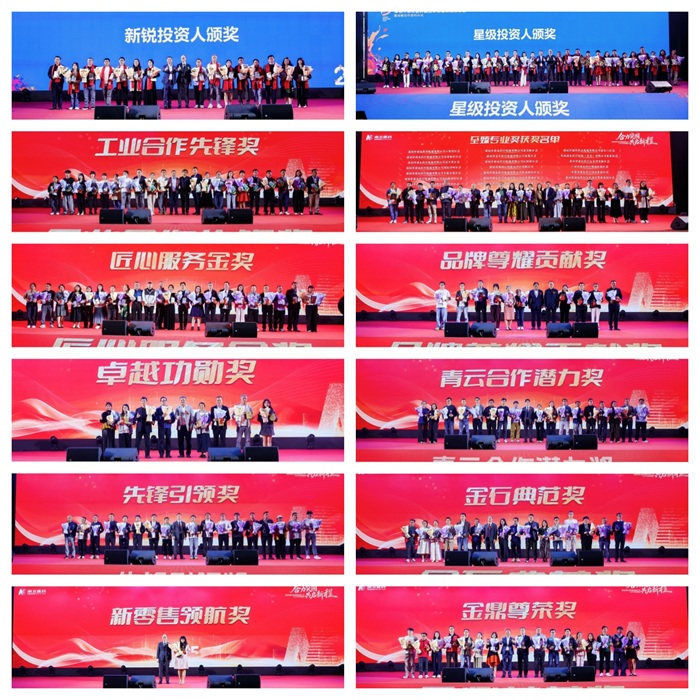 大會(huì)特設(shè)“星光璀璨”頒獎(jiǎng)盛典,向與集團(tuán)風(fēng)雨同舟、貢獻(xiàn)卓越的合作伙伴與投資人致以最高敬意?;顒?dòng)隆重表彰了數(shù)十位新銳與星級(jí)投資人,以及近百家在工業(yè)合作、專業(yè)服務(wù)、匠心運(yùn)營(yíng)、品牌貢獻(xiàn)、卓越功勛等方面表現(xiàn)突出的標(biāo)桿門店。同時(shí),大會(huì)向眾多優(yōu)秀工業(yè)廠家、供應(yīng)商頒發(fā)了“青云合作潛力獎(jiǎng)”、“先鋒引領(lǐng)獎(jiǎng)”、“金石典范獎(jiǎng)”、“新零售領(lǐng)航獎(jiǎng)”及最高榮譽(yù)“金鼎尊榮獎(jiǎng)”,全面肯定了供應(yīng)鏈生態(tài)伙伴在助力南北醫(yī)藥集團(tuán)持續(xù)成長(zhǎng)中的核心價(jià)值。