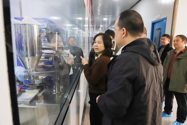 在公司領(lǐng)導(dǎo)陳才安、梁愛春、凌佩玲的陪同下,調(diào)研團隊先后深入制劑車間、產(chǎn)品展廳等核心區(qū)域,全方位考察企業(yè)生產(chǎn)運營與發(fā)展布局。在現(xiàn)代化制劑車間,調(diào)研團隊近距離觀摩藥品生產(chǎn)全流程,詳細詢問質(zhì)量管控標(biāo)準(zhǔn)、工藝創(chuàng)新難點及產(chǎn)能提升舉措,對公司嚴謹規(guī)范的全鏈條生產(chǎn)管理體系給予高度認可。在產(chǎn)品展廳,通過實物展示、功效講解與互動交流,調(diào)研團隊深入了解雙蟻祛濕通絡(luò)膠囊、雙蟻復(fù)方感冒靈顆粒、復(fù)方金銀花顆粒等核心產(chǎn)品的性能與療效,對公司深耕抗感治咳和風(fēng)濕類藥物領(lǐng)域、傳承創(chuàng)新壯醫(yī)藥文化的發(fā)展定位形成直觀認知。